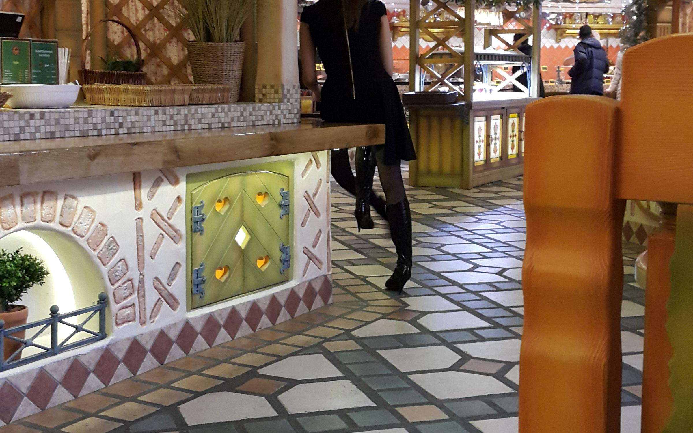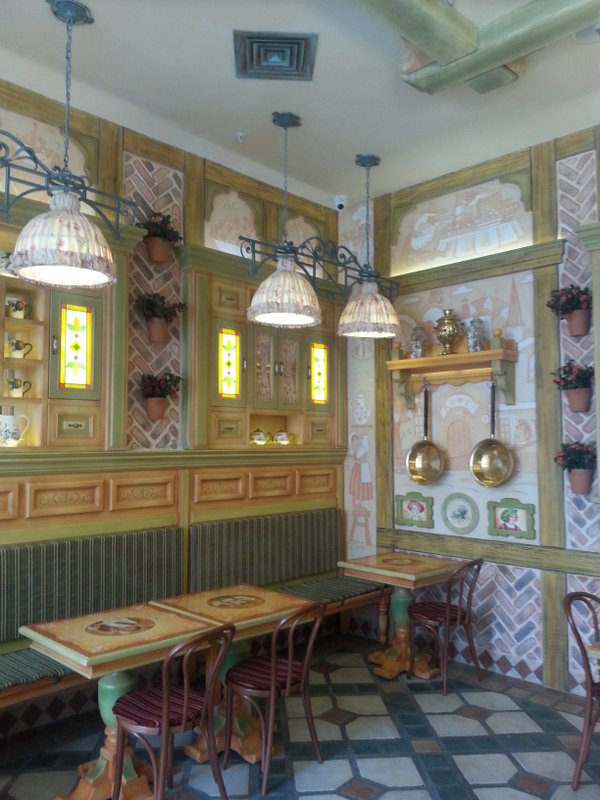 Дизайн харчевни продуман до мелочей и создает теплую, дружелюбную атмосферу. Оригинальная и стильная деревянная мебель «hand made», необыкновенной красоты витражи, утварь, ставшая предметами интерьера — эти дизайнерские находки в оформлении вызывают восторг у посетителей, и в первую очередь у наших маленьких гостей!