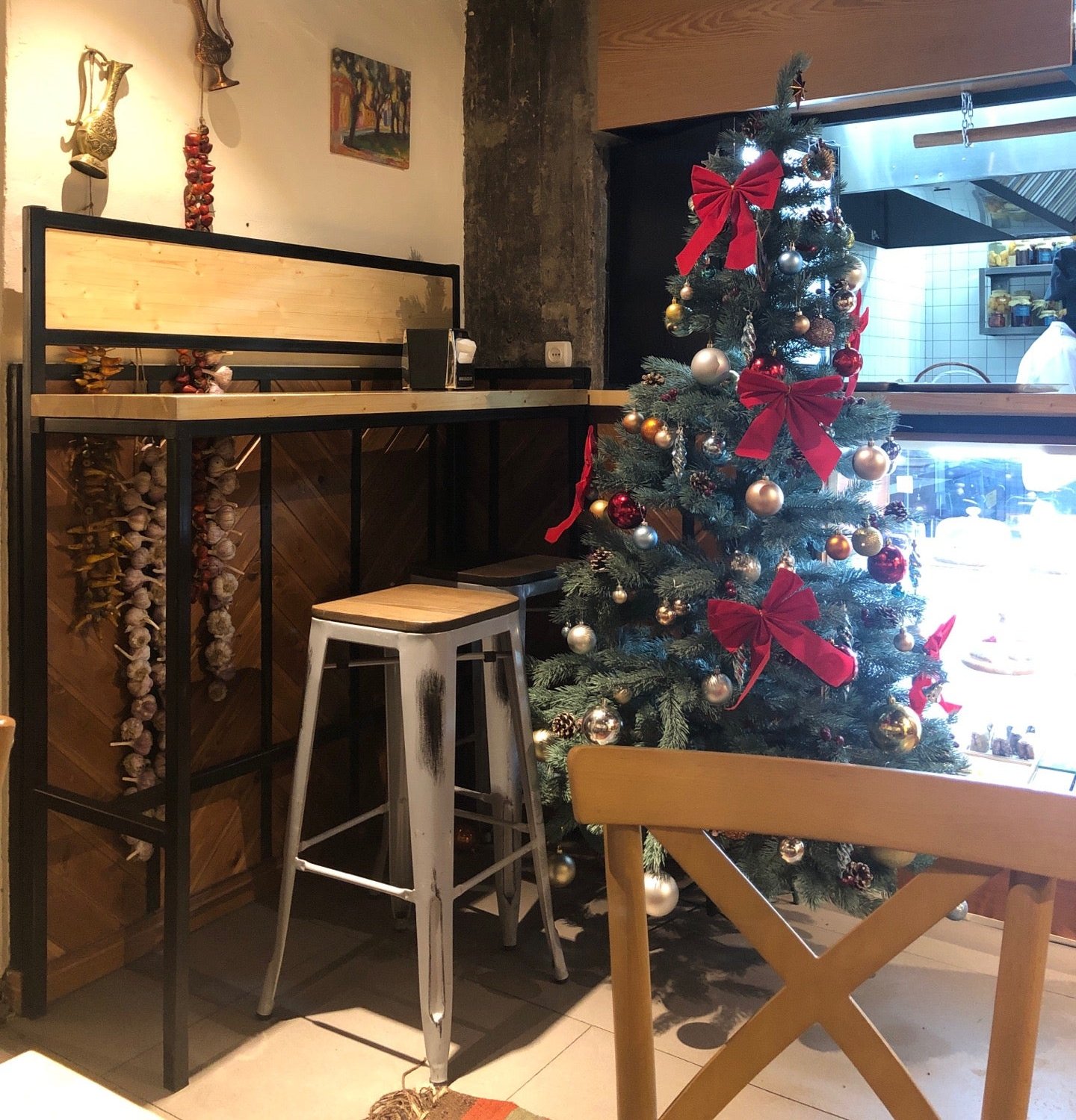 Демократичные цены, скромный интерьер, вкусная еда и домашнее вино. Самообслуживание.