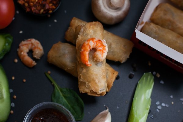 Для ценителей отменного вкуса и высокого качества. ⠀ Хрустящие рулетики из тонкого рисового теста с начинкой из рубленных креветок или овощей. Прекрасно сочетаются с соусом карри или кисло — сладким. ⠀ Давай похрустим? Готов?