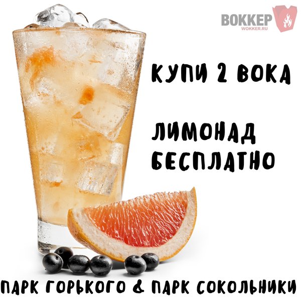 ПРИХОДИ В ВОККЕР ПАРК СОКОЛЬНИКИ & ПАРК ГОРЬКОГО! КУПИ 2 ВОКА И ПОЛУЧИ ЛИМОНАД В ПОДАРОК! Условия акции: 1. Срок проведения акции с 18.07.20 по 31.08.20. 2. Акция проводится в лапшичных Воккер Парк Горького и Парк Сокольники. 3. При покупке двух воков получите в подарок бутылку лимонада 0,5 на выбор (имбирный, малиновый, грепфрут-бузина, мохито). 4. ВАЖНО! Для получения подарка покажите кассиру пост на экране устройства до момент пробития чека. 5. Скидки и акции не суммируются.