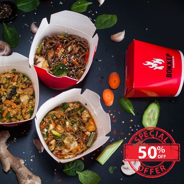 Срок действия акции ограничен! «Чикен Комбо» вок + напиток на выбор — 200 руб. «Бизнес Комбо» вок на выбор + суп или салат на выбор + напиток на выбор — 300 руб. «Супер Комбо» вок на выбор + суп на выбор + салат на выбор + напиток на выбор — 350 руб. При покупке комбо — получи карточку с наклейкой. Собери 4 наклейки забери #воккер 5-й «Чикен Комбо» бесплатно. 5-й «Бизнес Комбо» бесплатно. 5-й «Супер Комбо» скидка 300 руб.