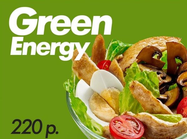 Мощный заряд зеленой энергии. Попробуй новинку «Green Enerqy» Микс салатных листьев айсберг и романо, обжаренные шампиньоны, куриная грудка, яйцо, помидоры черри с добавлением нашей фирменной азиатской заправки.