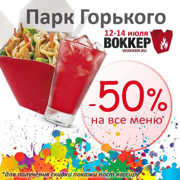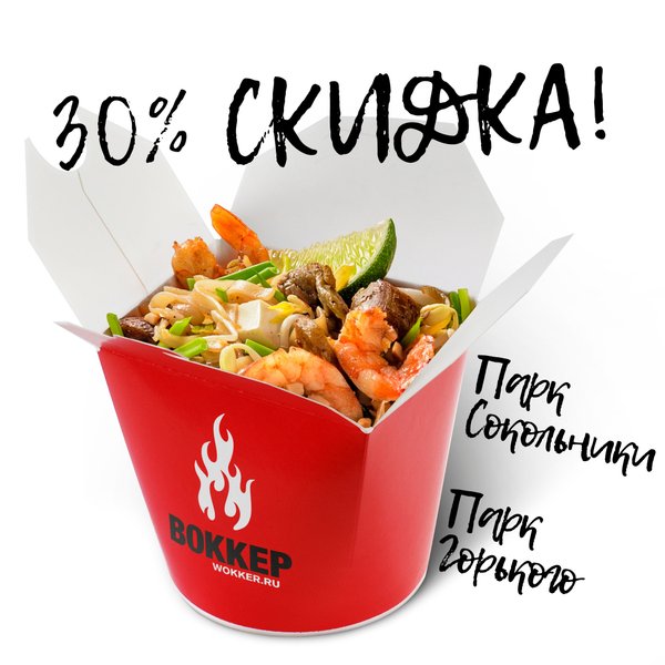 ПОКАЖИ ПОСТ КАССИРУ И ПОЛУЧИ СКИДКУ 30%. ПОПРОБУЙ ВОККЕР В ПАРК ГОРЬКОГО И ПАРК СОКОЛЬНИКИ. Условия акции: 1. Срок проведения акции с 18.07.20 по 31.08.20. 2. Акция проводится в лапшичных Воккер Парк Горького и Парк Сокольники. 3. До момента начала заказа, покажите пост кассиру на экране мобильного устройства и получите скидку 30% на все меню. 4. Скидки и акции не суммируются.