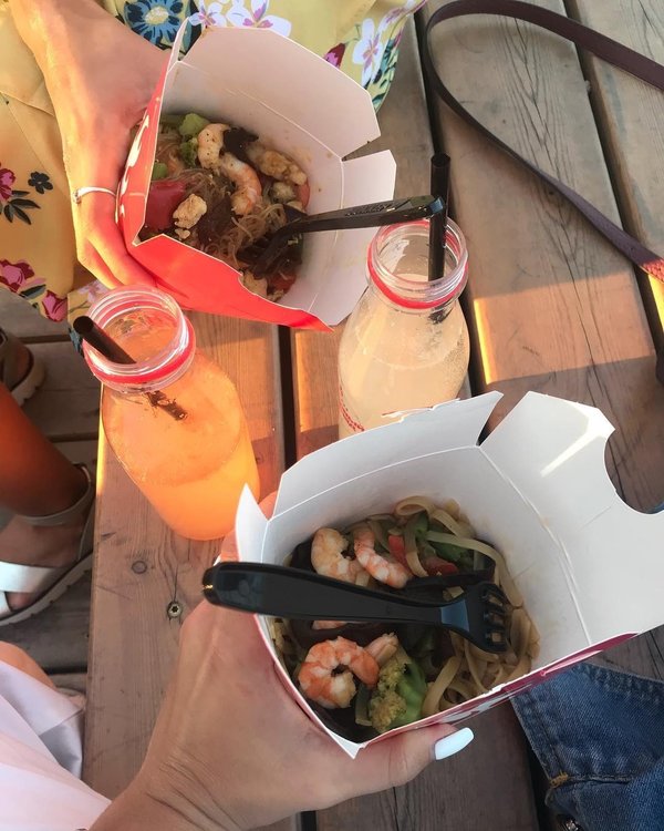 Summertime Relax. ⠀ Чем себя сегодня побалуете? Cheat meal: яичная лапша с овощами, отборные морепродукты, в тайском пряно — сливочном соусе том ям. Пятница же!