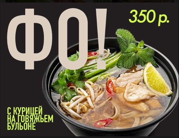 Попробуй мощный заряд энергии Легендарный вьетнамский суп «ФО», сварен на говяжьем бульоне с травами и специями, с добавлением рисовой лапши, куриной грудки, соевых ростков и зелени. «Вег Вог» рисовая лапша со свежими овощами, сыром тофу, ростками сои в соусе терияки. Салат «Green Energy» микс салатных листьев (айсберг и романо), куриная грудка, яйцо, помидоры черри, обжаренные шампиньоны, в фирменной азиатской заправке. Горячий напиток «Глинтвейн безалкогольный» из фруктов и специй.