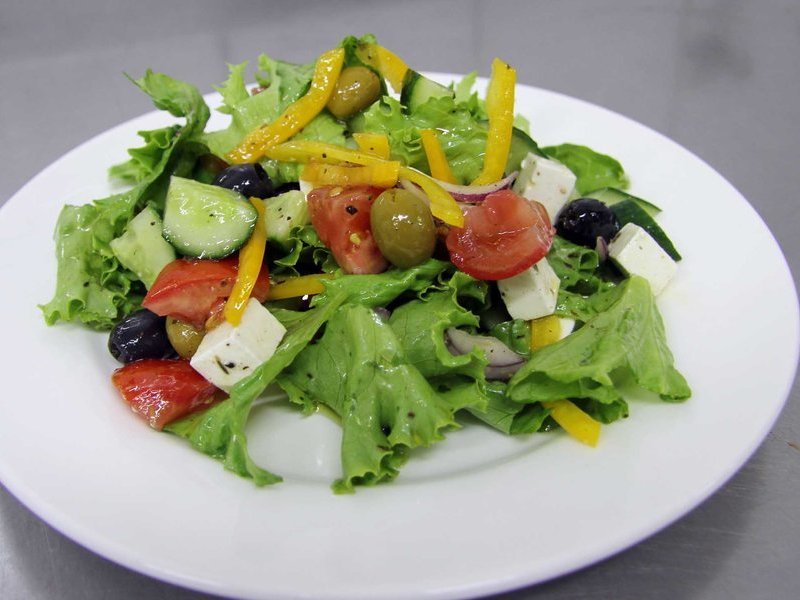 Традиционный салат греческих фермеров с домашним сыром, св овощами, оливками, маслинами и ароматным ...