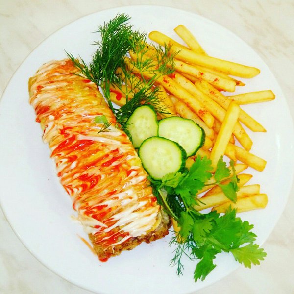 Бризоль с картофелем фри (говядина, лук, яйца, картофель, специи) 500 гр — 650 тг