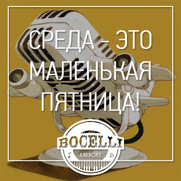 По сложившимся традициям любителей «погулять», среду обозначили «Маленькой Пятницей». Желаем продуктивно закончить рабочий день и немного отдохнуть вечером. Ваш, Бочелли!