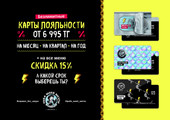Здравствуйте, Жамал! Спасибо, что нашли время оставить отзыв о нашем заведении!) Да, у нас действительно внутренние скидки не суммируются с приложениями лояльности) Я думаю, что гораздо удобнее использовать нашу внутреннюю скидку, так как по акции мы ДАРИМ ЕЩЕ 4 ЧАСА ВРЕМЕНИ В КАБИНКЕ БЕСПЛАТНО И ВОДКУ АБСОЛЮТ 0,5!))) Будем рады видеть Вас вновь!)