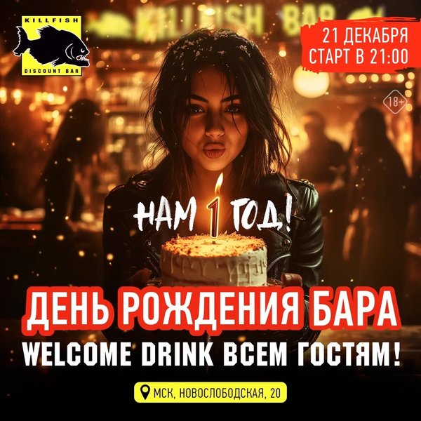 Бары KILLFISH DISCOUNT18 декабря 2025 в 19:00