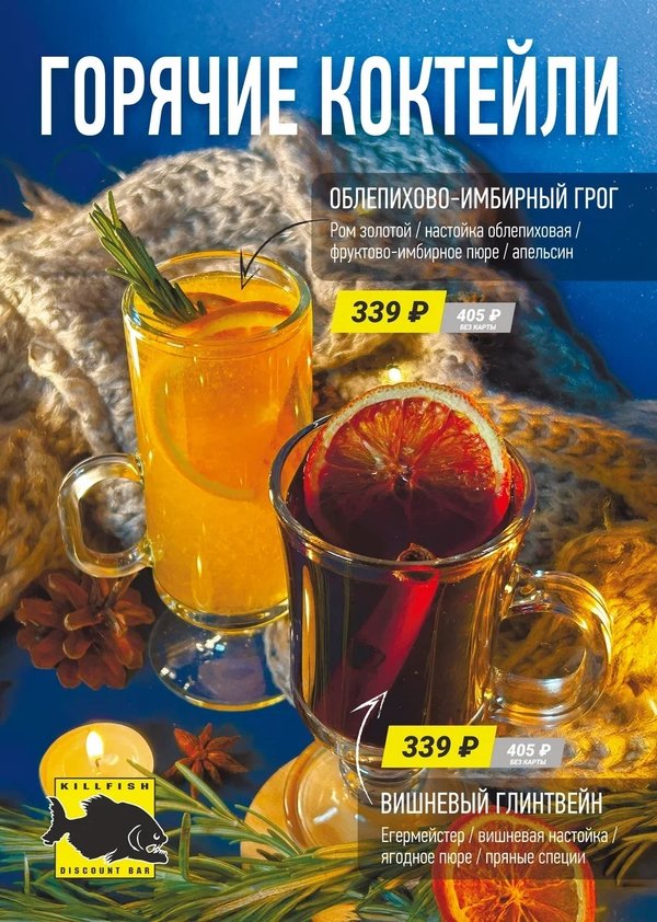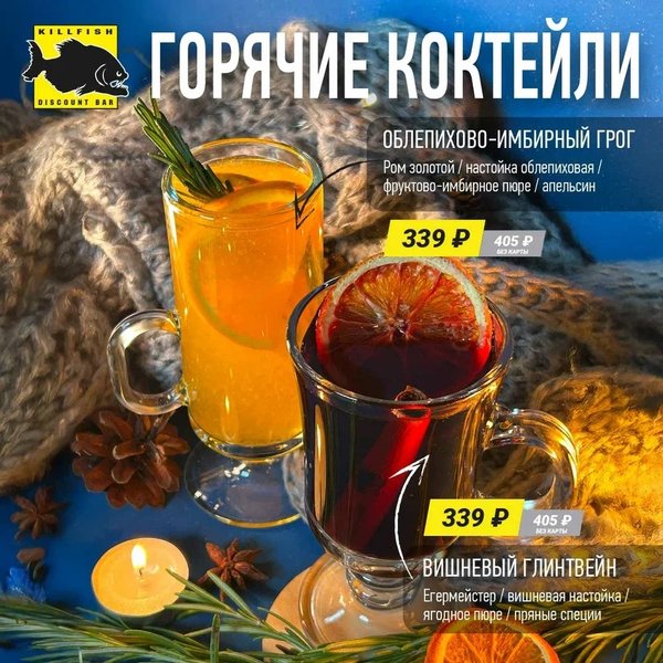 Питер, встречай горячие новинки в KILLFISH! Облепихово-имбирный грог на золотом роме и вишневый глинтвейн на егермейстере уже кипят от нетерпения попасть в твои ладони!