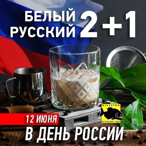 В честь прадника для настоящих патриотов мы подготовили акцию 2+1 на коктель «Белый русский»!