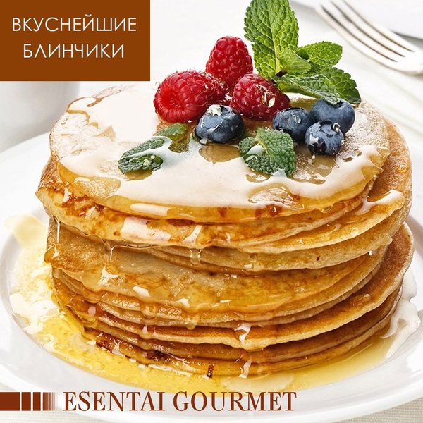 Ароматные, тонкие и вкусные блинчики от шеф-повара Esentai Gourmet никого не оставят равнодушным. Тонкие и золотистые блинчики прекрасно подойдут к утреннему чаю или праздничному столу. Как многие знают, блины универсальное блюдо, которое может быть как сладким десертом с джемом, вареньем или шоколадом, так и изысканным блюдом с ломтиком лосося или икрой. Мы готовы предложить вам блинчики с различными начинками на ваш выбор! Добро пожаловать!