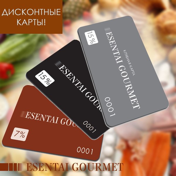 Esentai Gourmet сделает вашу жизнь проще и поможет сэкономить! Дорогие покупатели гастронома Esentai Gourmet, спешим вам напомнить, что в нашем гастрономе действует система дисконтных карт! Стоимость дисконтных карт: — Стандартная карта в 7% - 31.000 тг. — Стандартная карта 15% - 55.000 тг. — Клубная карта 15% - 45.000 тг. Клубная карта «Esentai Gourmet» помимо скидки 15% предоставляет своим владельцам возможность первыми узнавать обо всех новинках, акциях и событиях гастронома, а также получать подарки от гастронома Esentai Gourmet и партне… — Читать дальше