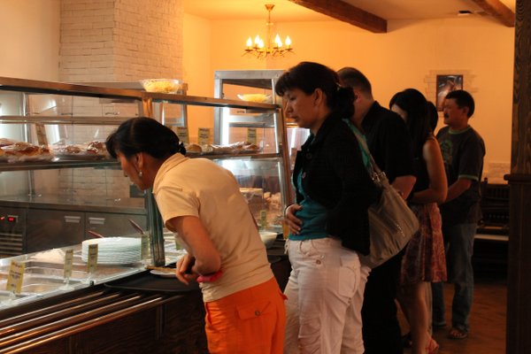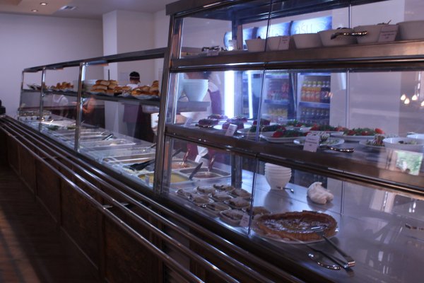 Шведский стол в обеденное время, где вы платите за каждой блюдо отдельно!Очень быстро и удобно!)