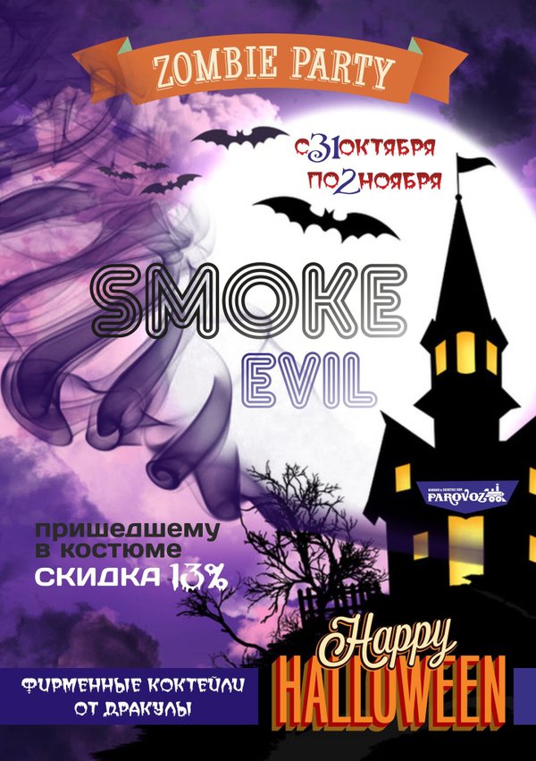 Parovoz Bar (30.10.2013): Вечеринка в #parovozbar! с 31 октября по 2 ноября в честь праздника HALLOWEEN приходи к нам подымить на ZOMBIE PARTY! Тому, кто придет в костюме СКИДКА -13%