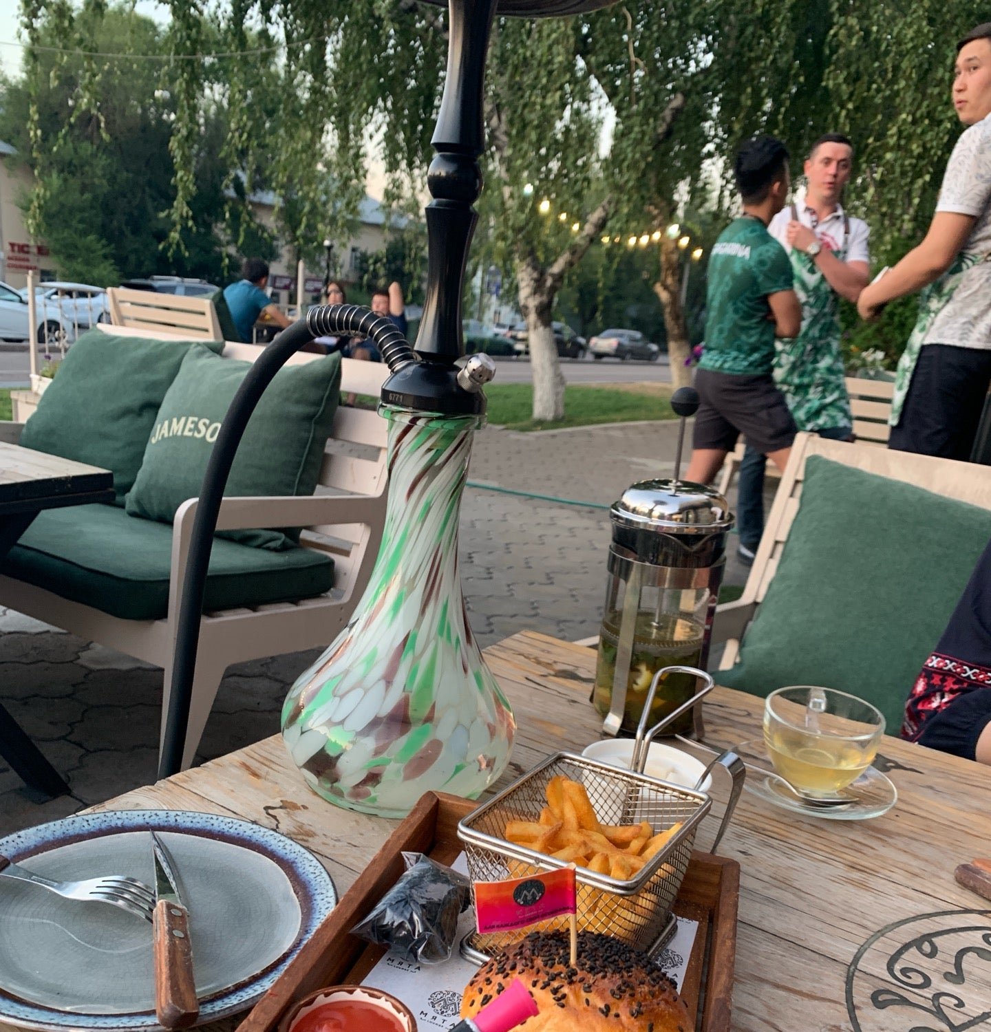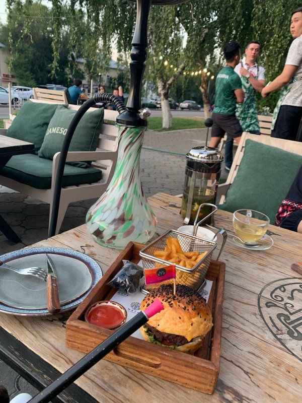 Зашли туда на обед. Посетителей было не много, сели внутри. Заказали чайник чая заявленного, как хэндмейд и пицу Маргарита…казалось бы…чего проще и быстрее (по этой причине и заказали). Чай принесли быстро, но…он был слишком сладким, о чем официант НЕ предупредил. В ожидании пищи проходит 30!!! минут. И тут я вижу как пицу, похожую на нашу выносят на улицу. Я подзываю официанта, спрашиваю где наш заказ, в ответ слышу, что через 3- 4 минут (а прошло уже 40 минут) наша пица будет готова!!! На мой вопрос Не нашу ли пицу унесли на улицу, официант ответил утвердительно!!! При этом даже не извинился!!!