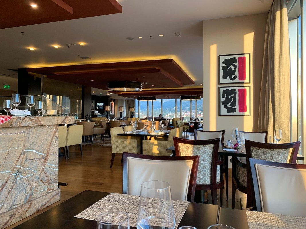Отличный бар и ресторан с великолепным видом на город. Дорого, народу никого. Кухня и обслуживание на высоте, как и должно быть в Ritz Carlton