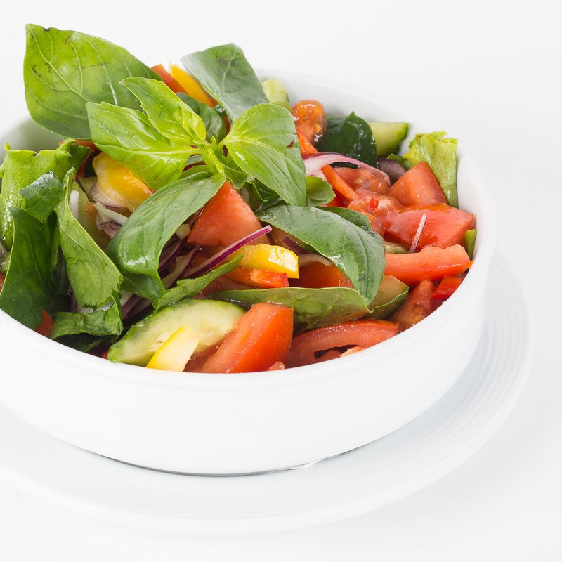 Помидоры, огурцы, сыр фетакса т микс салата с легким оливковым дрессингом
