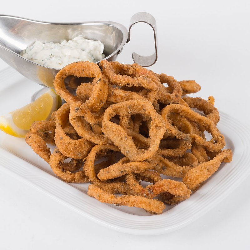 Салат из морских обитателей молодых овощей и оливок с легким оливковым дрессингом