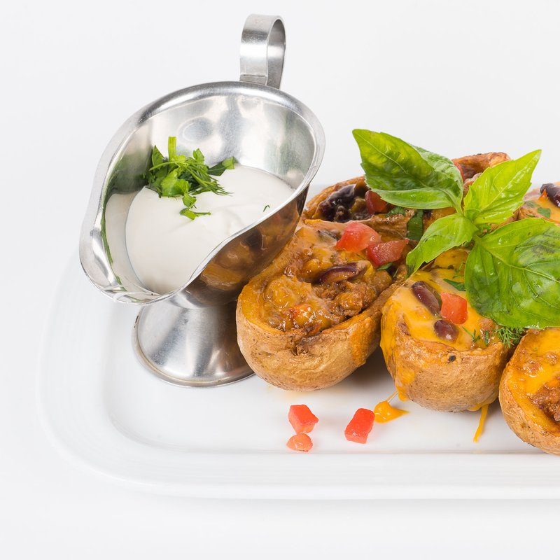 Картофельные лодочки с мясной начинкой,запеченные с чили и сыром чеддер.