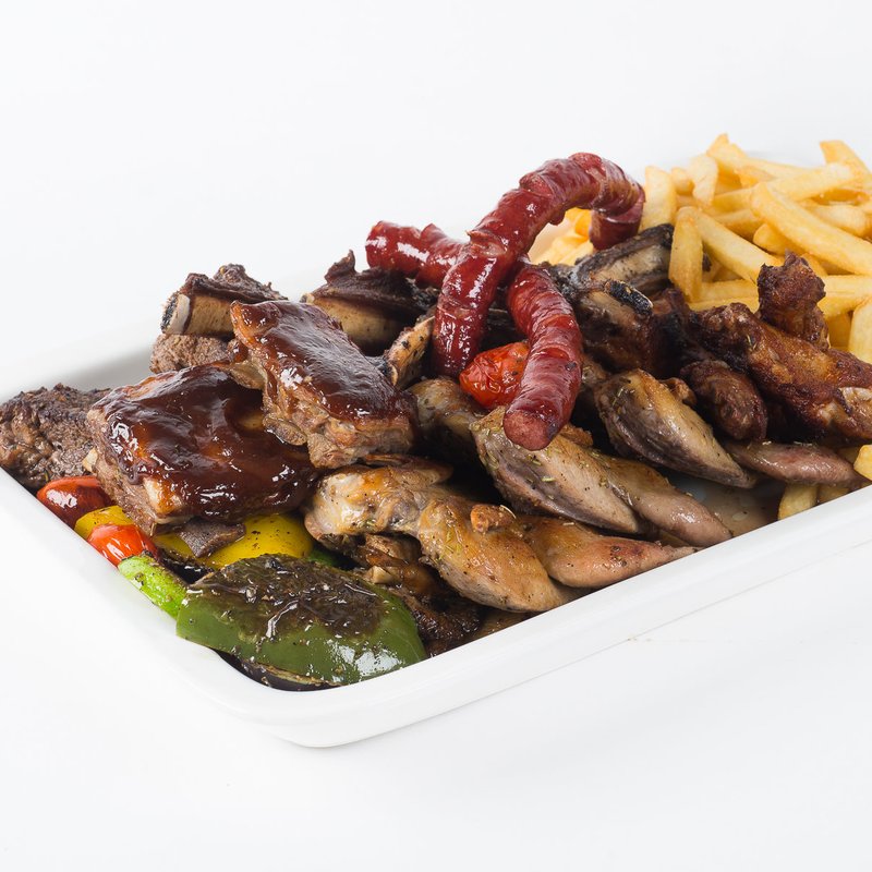 Микс - гриль для компании друзей. Ребрышки ягненка, перепела, телячьи медальоны,колбаски и куриные крылышки...