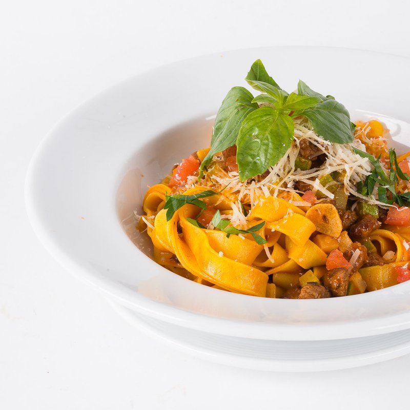 вырезка ягненка, обжаренная с медом, горчицей и черным кунжутом, с пряным сыром, базиликом и мини томатами...