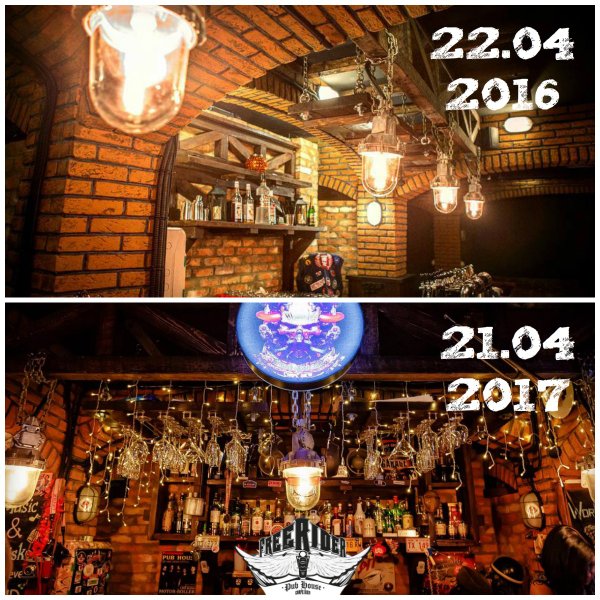 Раньше и теперь! Друзья, мы ежедневно работаем над тем, чтобы сделать Pub Freerider еще красивее, еще уютнее и еще атмосфернее! Спасибо тем, кто был с нами весь год и на чьих глазах происходили фантастические изменения! И добро пожаловать тем, кто только готовится познакомиться с нами! Ждем всех на празднование Дня Рождения 22 апреля, 20.00!