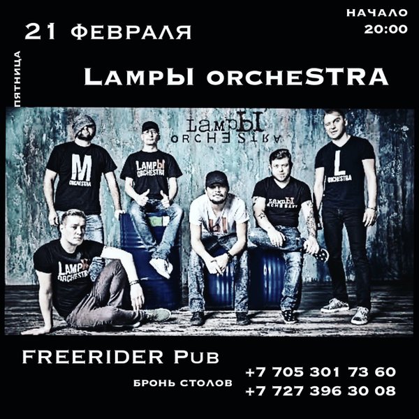 Yeeep! LampЫ orcheSTRA! Душа поёт и тело двигается во FREERIDER PUB ⠀ ⠀ ⠀ 21 февраля | 20:00 Неделя ЗАЩИТНИКОВ Отечества! ⠀ Ждём тебя в эту пятницу много есть, пить и танцевать под душераздирающие напевы LampЫ orchestra! Всем поклонникам творчества БЫТЬ! Кстати, на нашей странице в Инстагра РОЗЫГРЫШ ПОДАРКОВ! УЧАСТВУЙТЕ и ВЫИГРЫВАЙТЕ! ⠀ Стол бронируй заранее