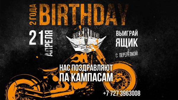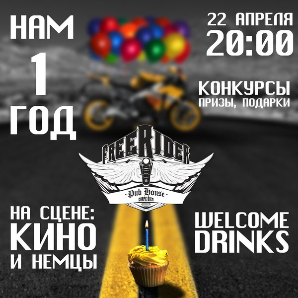 Приглашаем всех на День Рождения! Группа Па Кампасам создает настроение на сцене, Перепелка создает настроение на входе — велкам-дринк каждому гостю и розыгрыш подарочных наборов А Pub Freerider создает нашу фирменную атмосферу уже два года! Приходите поздравить нас и поздравиться самим Бронируем столики заранее «Выпьет все Апрель. И родится вновь. И придёт уже навсегда! Поможем выпить, родиться и прийти — пора уже! Заходите!» (с) Па Кампасам Наш адрес: Гагарина, 232