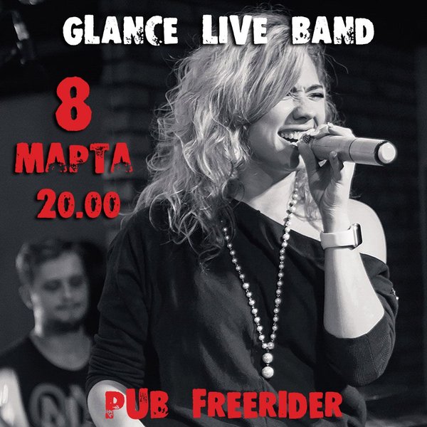 Glance Live Band на нашей сцене в самый женственный праздник года! 8 марта, 20.00, на вечеринке, посвященной прекрасным леди, в Pub house Freerider! А также розыгрыш подарков и призов, велкам-дринк «Секс на пляже» каждой гостье и праздничная атмосфера!