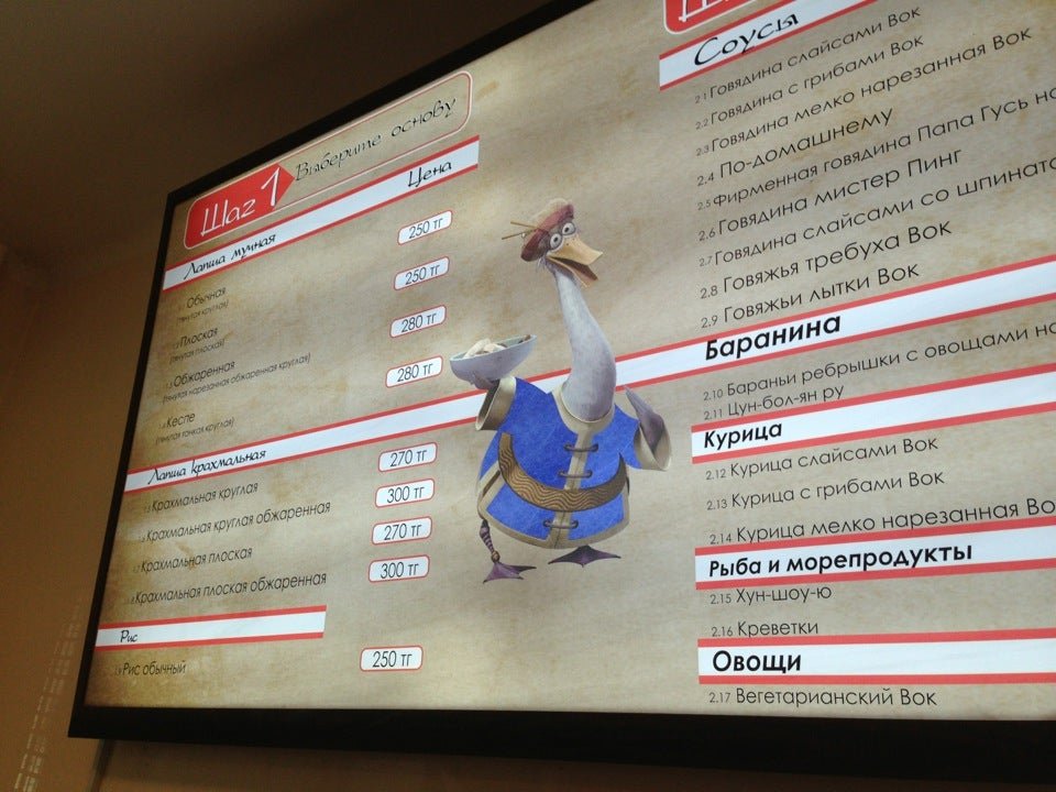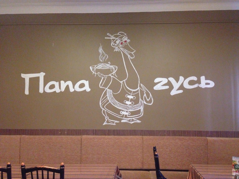 Кафе «Папа Гусь» расположилось недалеко от площади Астаны. Кафе представляет собой небольшое заведение, вмещающее до 35 человек, с теплой и уютной атмосферой. В меню представлен большой ассортимент блюд европейской, восточной и казахской кухонь. Кроме того, у заведения есть курьерская служба, которая доставит вам горячие блюда, супы, салаты, пироги и десерты домой или в офис.