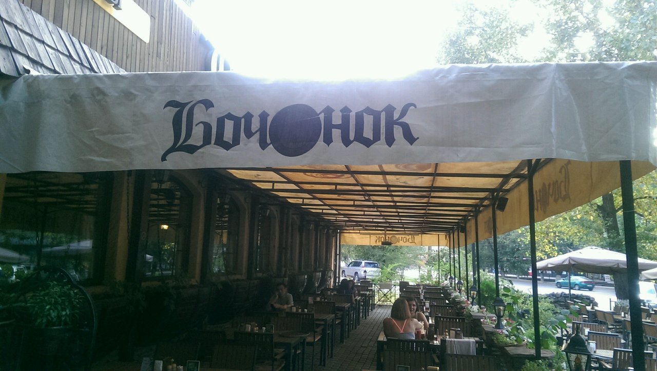 Пивной ресторан «Бочонок» находится на пересечении улиц Жандосова и Жарокова. Посетителям предоставляется меню, которое составляют блюда казахской и европейской кухонь. Данное заведение хорошо подходит для проведения вечера с друзьями. Живая музыка позволяет получить максимальное наслаждение от посещения ресторана. Персонал вежлив, приветлив и доброжелателен. Для удобства подключения гостей ресторана к сети Интернет имеется бесплатная точка доступа Wi-Fi. Ресторан работает без обеда и выходных.