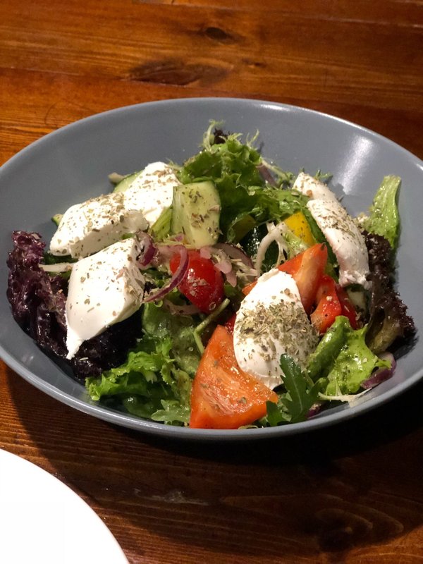 1. Цезарь с семгой и кунжутом — 4 маленьких кусочка семги, зелень горчит. оценка 3