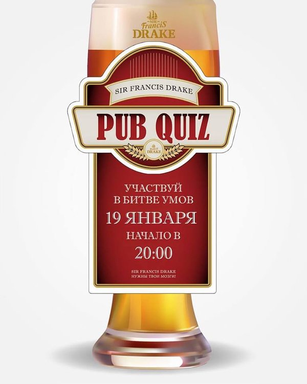 Разрази меня гром! В этот четверг состоится сумасшедшая битва умов! Сэру Фрэнсису Дрейку срочно нужны твои мозги для участия в интеллектуальной игре PubQuiz! PubQuiz — популярная игра для любителей «пошевелить извилинами» за кружкой пива в теплой компании друзей. Отвлекитесь от суеты будних дней, соберите свою команду! Проводить данное мероприятие будет всеми знакомый и любимый Алдияр @aldiyargh. Ну и конечно мы не оставим Вас без призов. Сбор гостей 19 января, в 20:00 ч. Напоминаем, что в этот день действует акция «1+1» на крепкий выдержанный… — Читать дальше