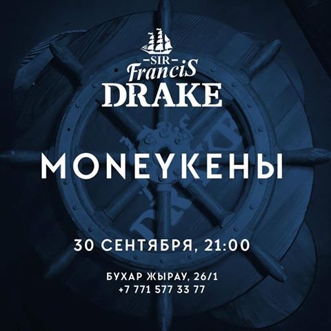 Что ждет вас в эту пятницу? Ну во-первых хорошее настроение, отличное пиво и дружеское общение без галстуков и обиняков. А во-вторых — праздничный(без всякого преувеличения) концерт группы MONEYKЕНЫ — отличной алматинской команды, которая уважает слушателя и умеет сделать настроение лучше. Вам понравится. Ждем вас в гости и напоминаем, что до пятницы у нас крайне выгодная цена на фирменное пиво Sir Francis Drake)))