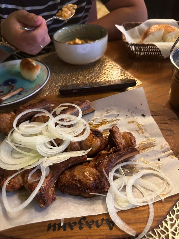 Пришли с супругой первый раз. Заказали шашлык,хычины и фри. Принесли фри еле тёплый,а шашлык наверное жарили в грузии,минут 40 жарили,мало того пересолёный и как резина. Хычины в алматы хуже чем алазани я не пробывал. И сервис на 2. Больше не пойду никогда.