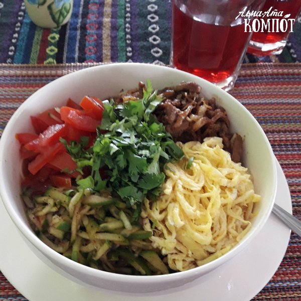 Кукси — легкий и сытный корейский суп с пшеничной лапшой, соевым бульоном, свежими овощами и кусочками говядины Стоимость добротной порции — 1000 тенге Ах, кстати, до конца лета по будням с 12:00 до 15:00 на все меню 30% скидка и кукси можно отведать всего за 700 тенге! В такую жару рекомендуем холодным