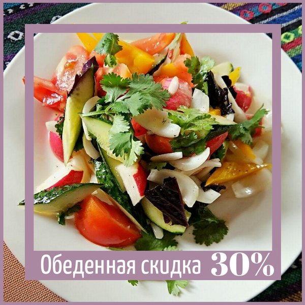 Больше еды вкусной и разной, По выгодным ценам откушай в обед! Законный перерыв с нами отпразднуй, Покинь, наконец, свой кабинет! По будням с 12:00 до 15:00 все меню дешевле на 30% Чем не повод хорошо провести время? Заезжайте: г. Алматы, мкрн. Кок-Тобе, ул. Сагадата Нурмагамбетова, 28 (пересечение ВОАД и ул. Диваева)