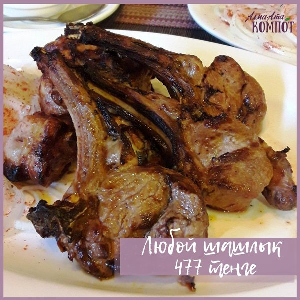 Нам часто задают вопрос: «А какой шашлык?» Отвечаем: «Любой!» Абсолютно любой шашлык из меню, а их у нас 16 (!) видов стоит 477 тенге, а также лагман и плов Акция действует постоянно в течение дня, заходите