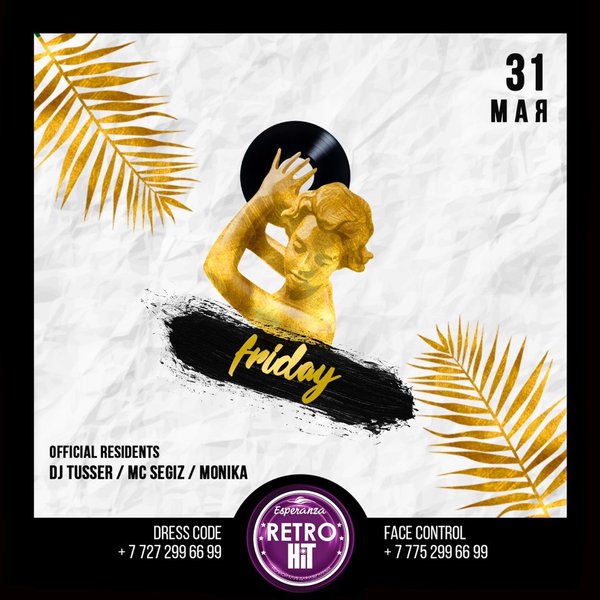 Последняя весенняя пятница Это лето будет жарким ждём тебя в ночном клубе Retro Hit _______ Dj TusSer @djtusser_official MONIKA @marala_music85 Mc Segiz @mc_segiz _______ Начало в 22:00 FC/DC ул.Сейфуллина 481