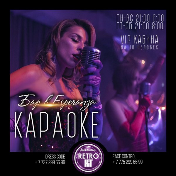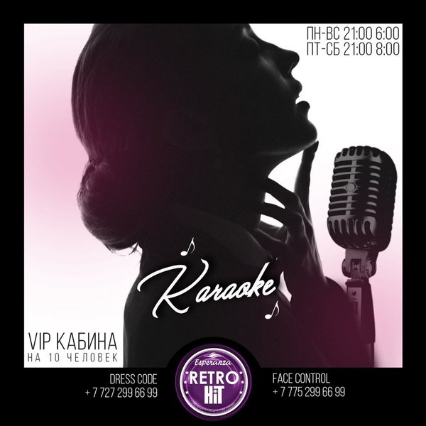 Почувствовать себя настоящей звездой Karaoke Hall – именно то, что Вам нужно! Мы объединяем Всех творческих людей, не боящихся выделяться и проявлять свои вокальные способности. У нас Вы найдете большой ассортимент песен, профессиональная Evolution Pro система и правильный настроенный звук позволят Вам всегда чувствовать себя уверенно ⠀⠀ Среда/ Четверг - 21:00—06:00 Пятница / Суббота с 21:00 - 08:00 ⠀⠀
