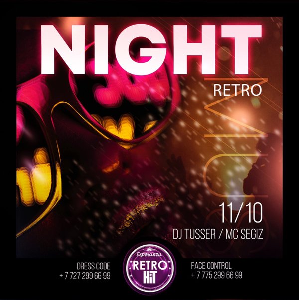 Сияй в эту ночь на танцполе в RETRO Hit Это твоя ночь . Line Up: Dj TusSer @djtusser_official Mc Segiz @mc_segiz ⠀ ⠀ СТАРТ: 22:00