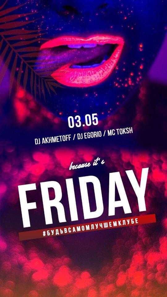 В честь дня Великой Победы ночной клуб FRIDAY ждёт именно тебя Если Вы не определились как провести выходные, то welcome в Friday __ Dj Egorio #Dj_Egorio ___ Наш адрес: ул.Сейфуллина,481.