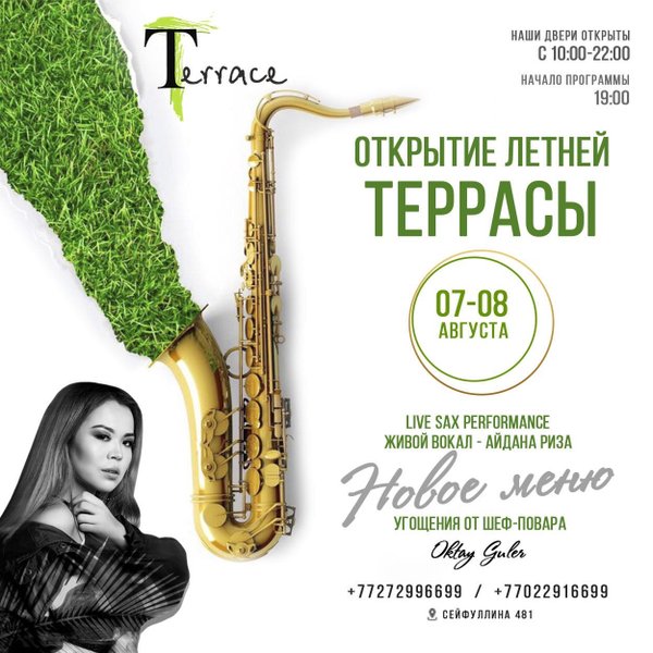 Прямиком из Турции, а точнее из солнечного Бодрума, к нам прилетел новый шеф-повар Oktay Guler, который виртуозно ломает кулинарные стереотипы и рамки! Он не просто сочетает продукты, а любит своё мастерство по-настоящему, относится к нему со всей душой, чем и хочет поделиться с вами. Работаем с 10:00—22:00 Начало программы 19:00 Live Sax Performance Живой вокал — Айдана Риза . Ждём Вас в гости Адр: проспект Сейфуллина 481 . ️ ️