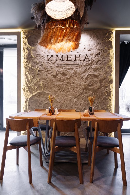 ИМЕНА — это городской современный ресторан, где переплетаются традиции гостеприимства, ламповой атмосферы и авторской кухни. Ресторан расположен в историческом здании на легендарной улице Тулебаева, прославленной именами знаковых современников. Здесь вы почувствуете себя отдохнувшим от городской суеты и зарядитесь энергией старого города.