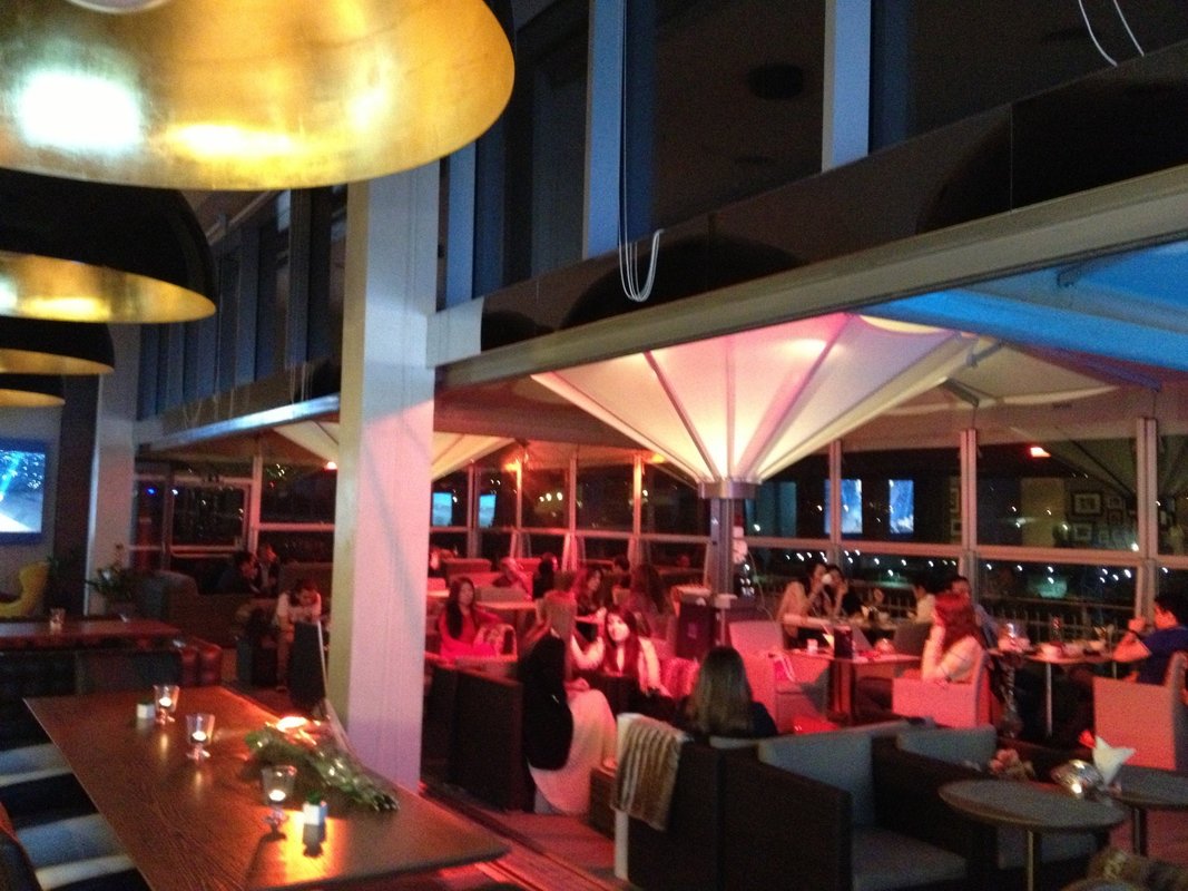 Никому не советую. Отстойный ресторан. Очеееееень долгое обслуживание. Бизнес ланч ждал 30 минут, гамбургер 50 минут. Так себе еда. Как в столовке на базаре. Сервис абсолютно не навязчивый. Отмороженная девица в упор стояла и пока не позвали так не подошла, ни здрасте, не бон аппетит швырнули на стол и отчалила. Вид хороший, но на один раз достаточно при такой еде и сервисе. В 30 градусную жару никакого занавеса тумана не было. Зато шум от автомобилей и загазованность. Уж лучше этажом ниже, затопоесть можно и быстро вежливо.… – показать