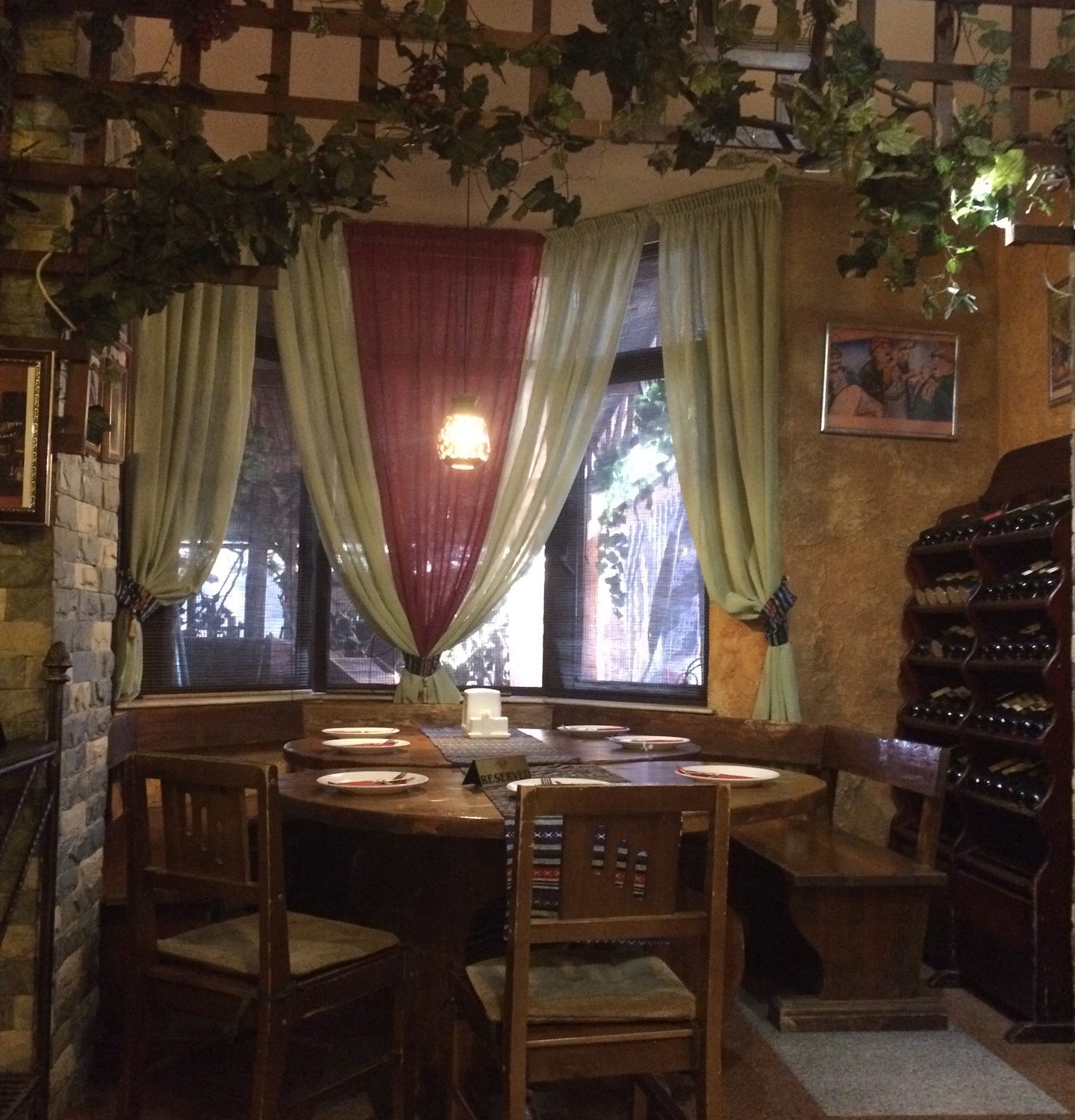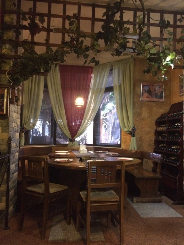 Был с друзьями 17.06.2016 — сидели на летнике. Обслужиаал официант Данияр. Всё приходилось долго ждать. Сначала пепельницу, потом напитки итд. Заказали вино Ахашени завода Марани — прекрасное вино, насыщенный букет, запах. Попросили ещё повторить вино.. Принесли — начали пить не можем понять почему вкус другой. Оказывантся Ахашени завод Марани закончилось — поинесли дубликат Ахашени Дамиани. Ничего доказать не смогли…официант и администратор докахывать начали, что невкусное вино круче и дороже итд итп Всё бы ничего если бы с нами не сидел гость из Грузии. Печально. Больше ни ногой.… – показать