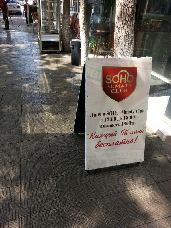 Ночной клуб «Soho» открыл свои двери для всех поклонников зажигательных вечеринок и просто хорошего отдыха в 1999 году. За прошедшее время заведение не утратило своего гостеприимства и ежедневно приглашает любителей клубной жизни расслабиться, отведать блюда из обширного меню местной кухни, послушать хорошую музыку — в «Soho» по вечерам выступают музыканты. Клуб открыт семь дней в неделю: в пятницу и субботу вход обойдется посетителям в 1000 тенге, в остальные дни попасть в заведение можно бесплатно.