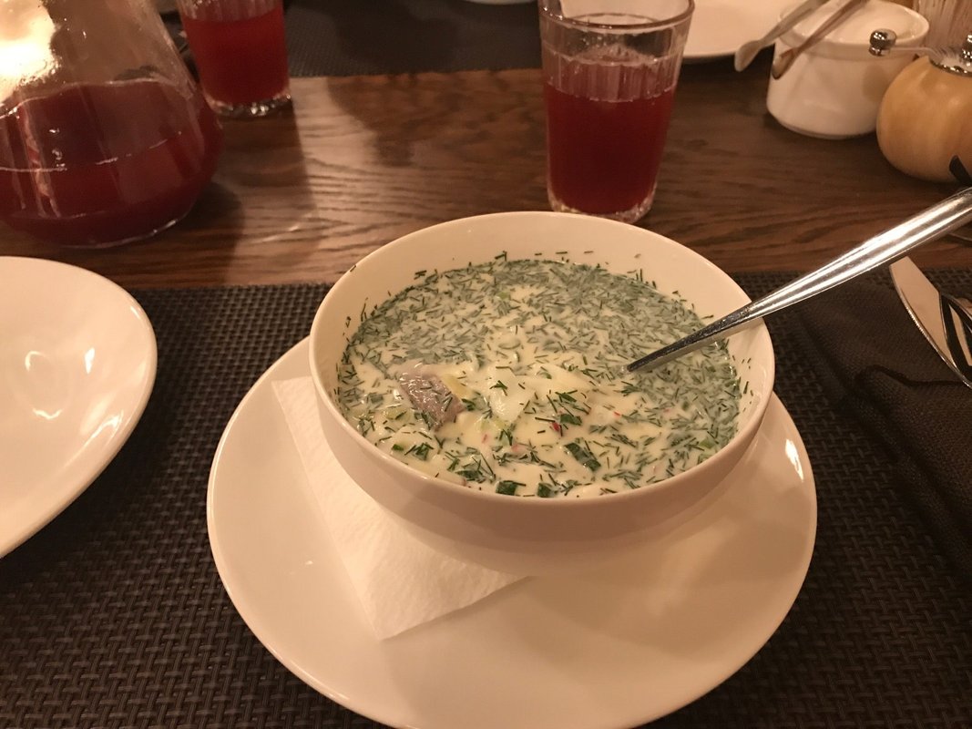Русск. кухня в прекрасном исполнении! Щи «богатые» очень вкусные, сметана как у бабушки в деревне, расстегай тоже супер! Лимонад цитрус отличный. Муж брал свиную шею на гриле и доволен. Рекомендую!